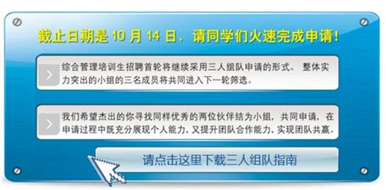 答:可以。無論你申請綜合管理培訓生還是實習生項目,我們的篩選標準是一致的,所以混合組隊不會對申請造成任何影響。