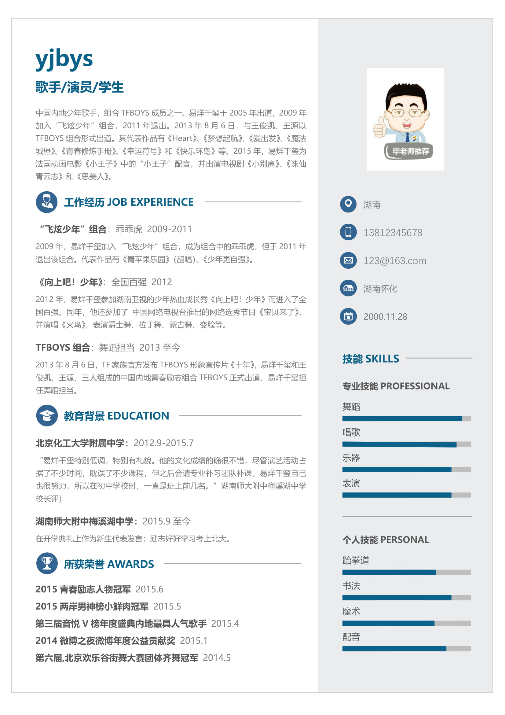 A111常用青,灰,藍簡歷模板