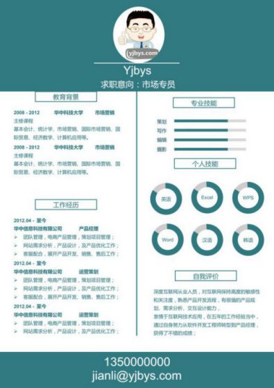 A048可調技能環墨綠色,藍色,綠色簡歷模板