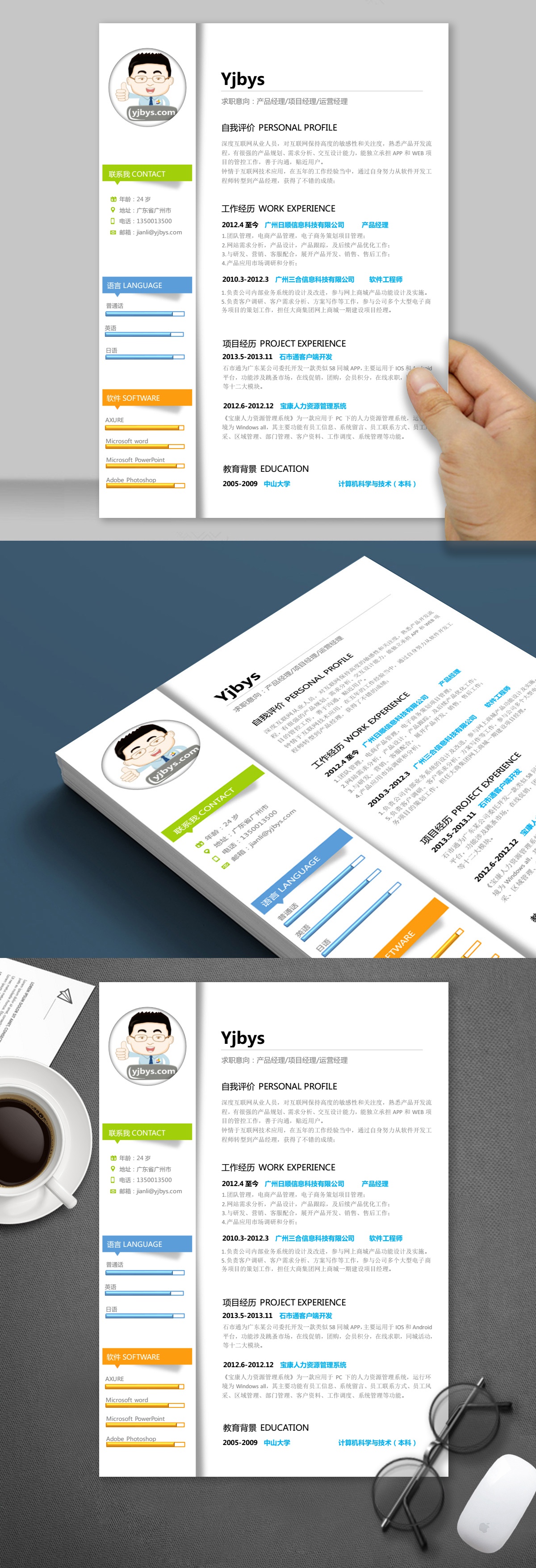 A589常用黃綠,淡藍,粉橙簡歷模板