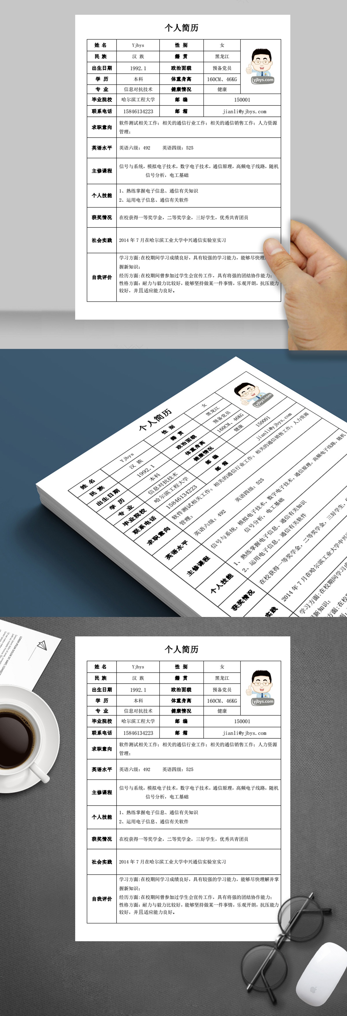 A607簡約灰藍,粉紅,青藍簡歷模板