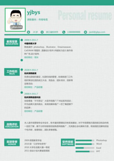 A186常用綠,褐,藍簡歷模板