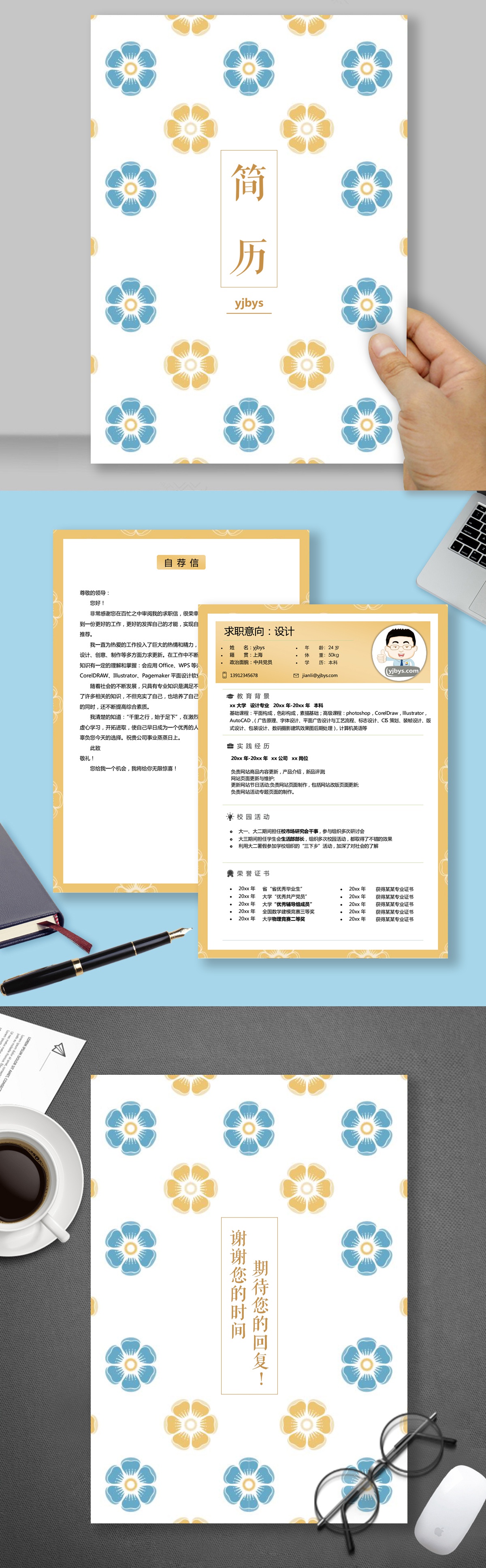 A168表格黃,灰,藍簡歷模板