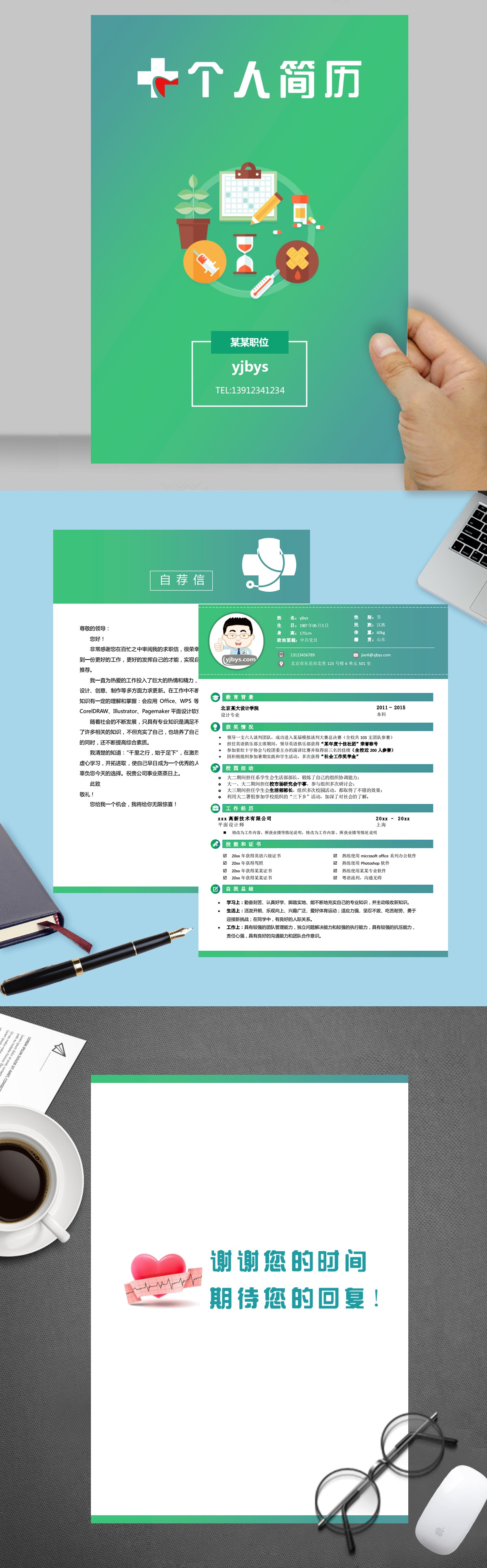 A078簡約綠,褐,藍簡歷模板