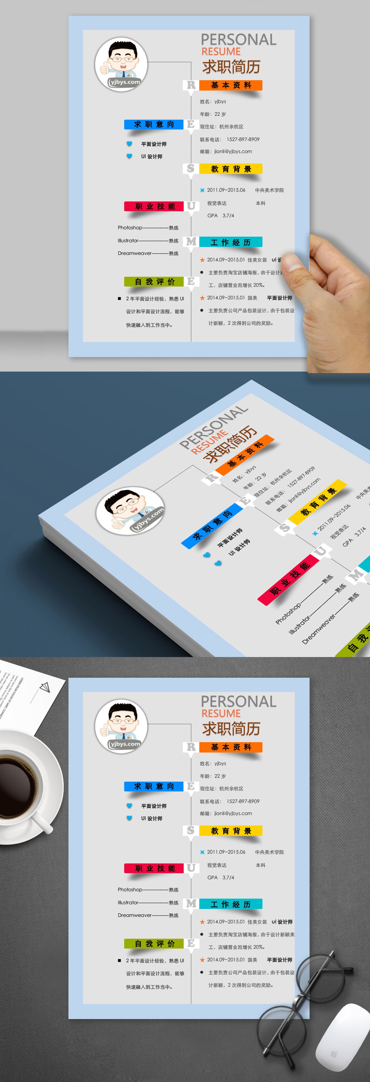 A524創意4頁簡歷模板