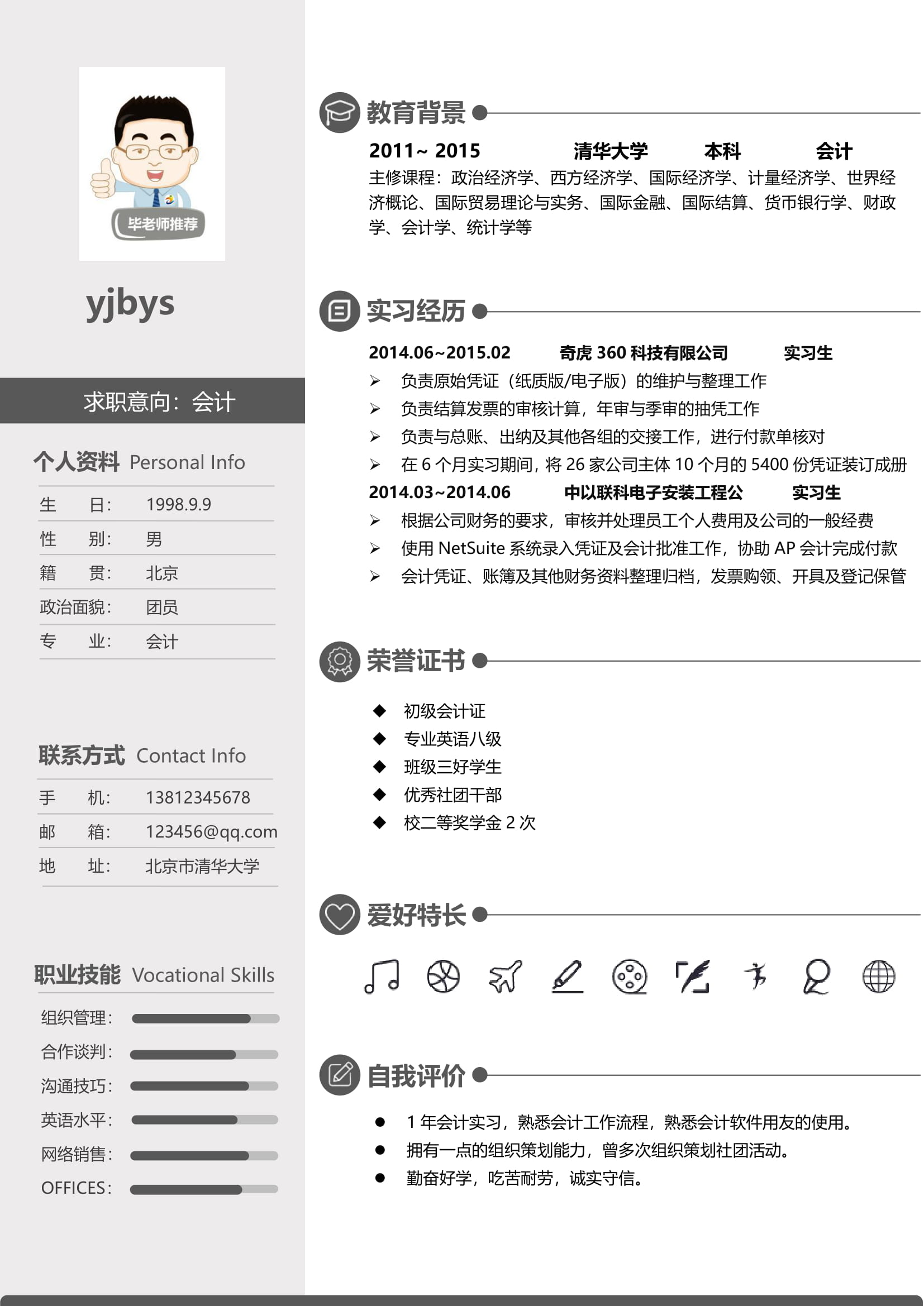 A111常用青,灰,藍簡歷模板