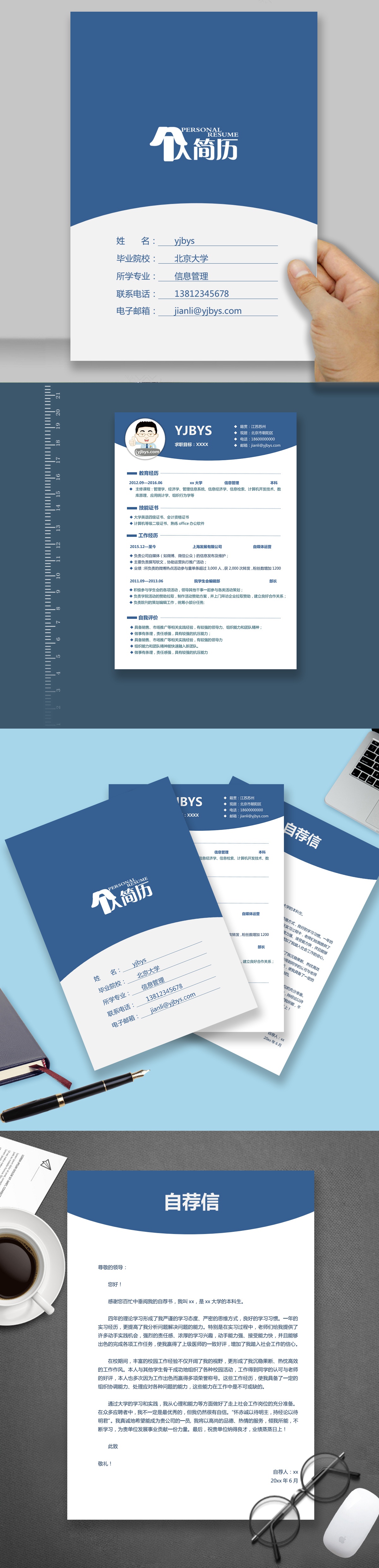 A163常用淡藍,藍,綠簡歷模板