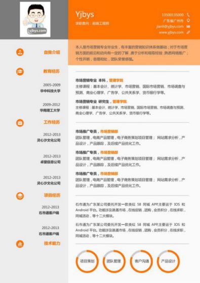 A054多彩商務橙色,藍色,綠色簡歷模板