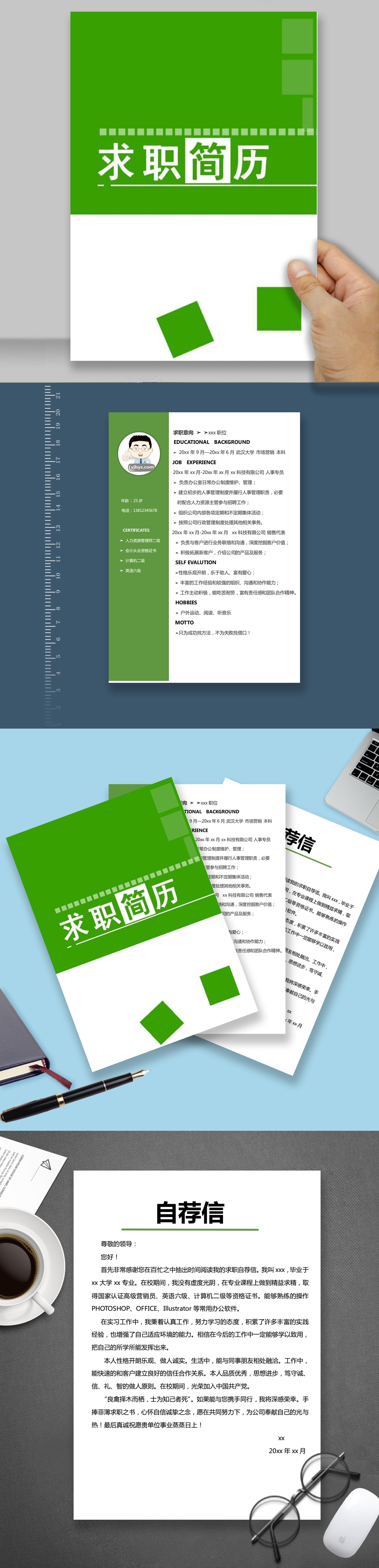 A431簡約藍,灰,綠簡歷模板
