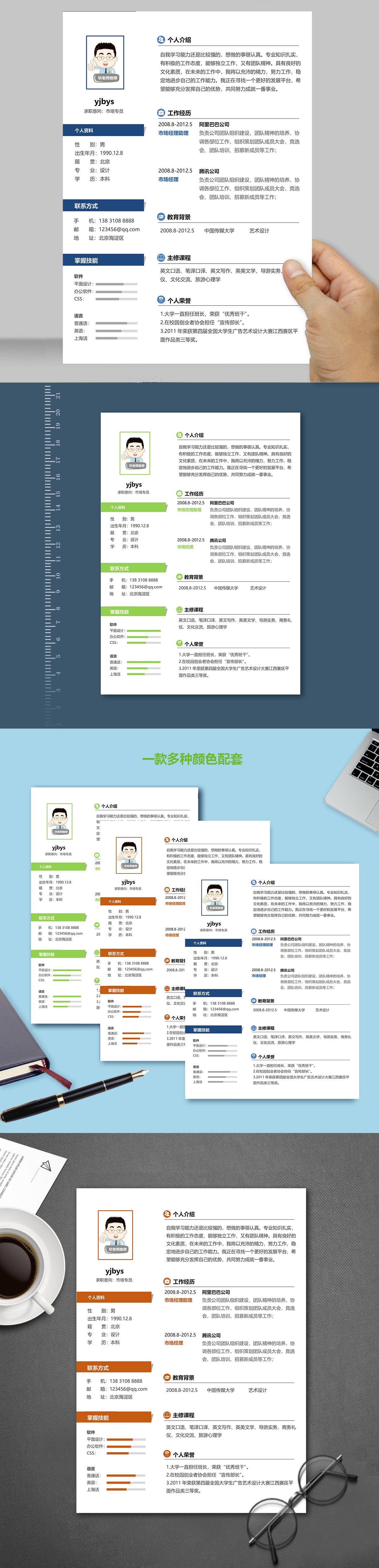 A077常用藍,褐,紅簡歷模板