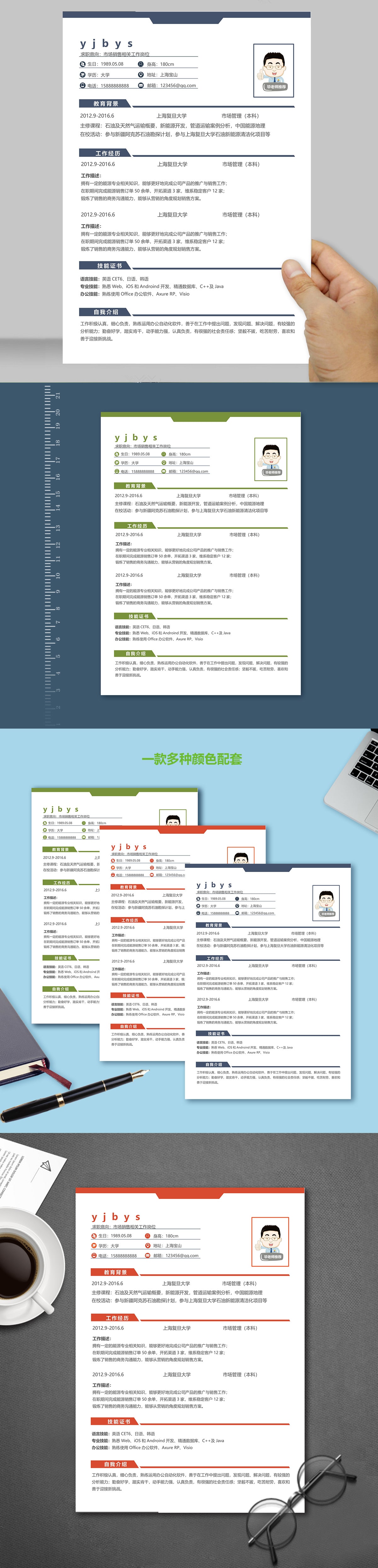 A563常用寶藍,紅橙,綠簡歷模板