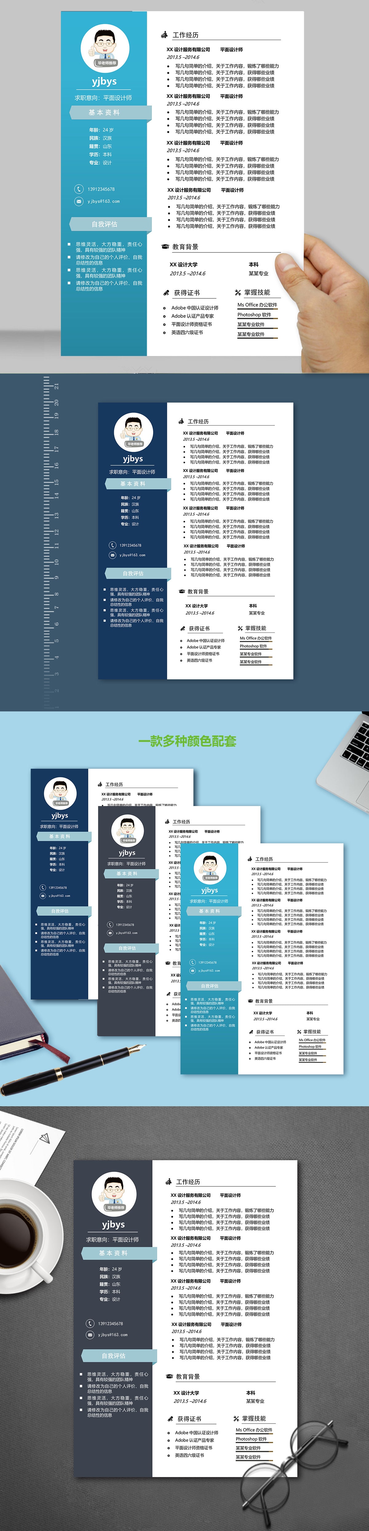 A644套裝藍色簡歷模板