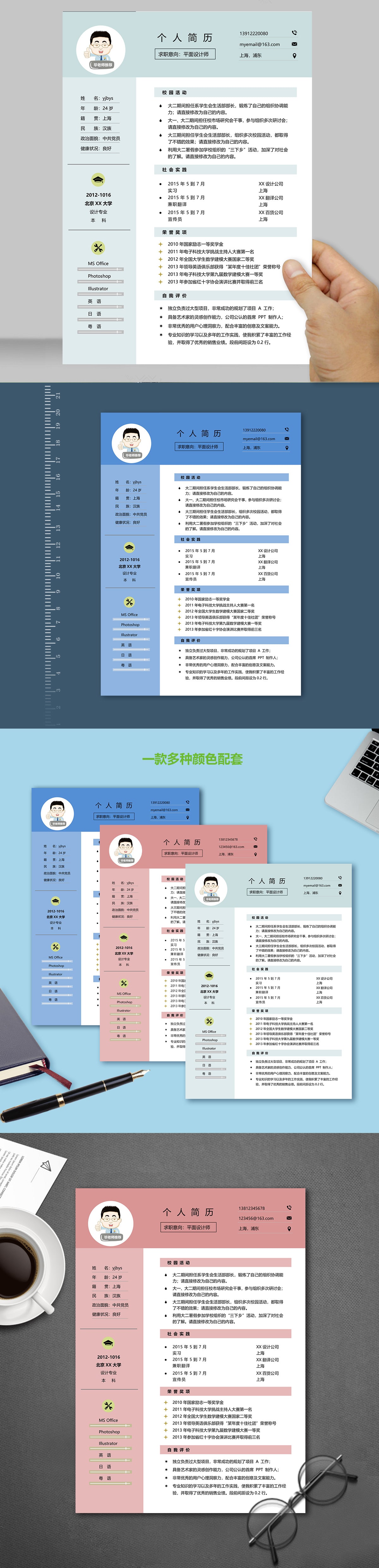 A133常用紅,藍,綠簡歷模板