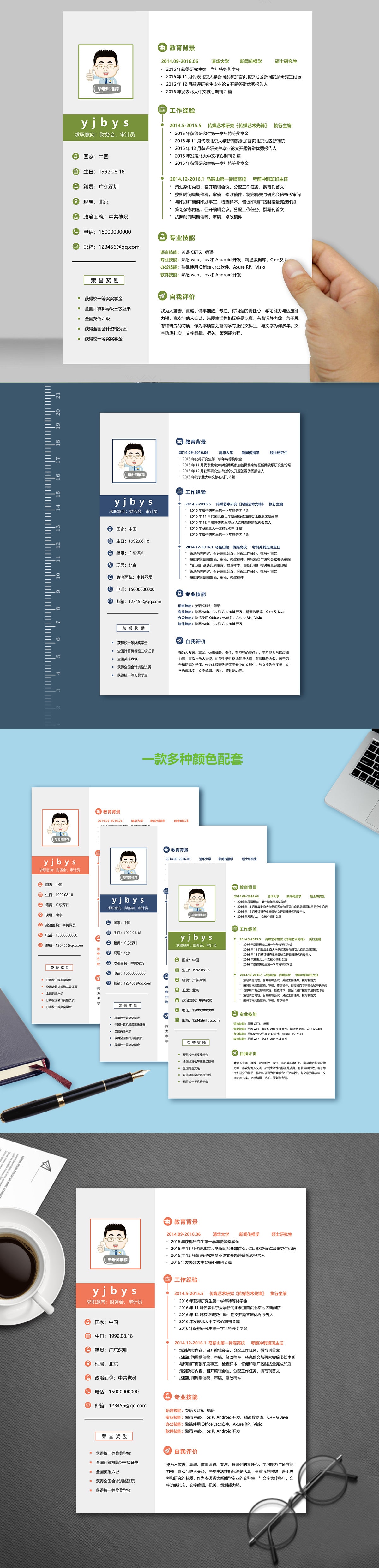 A591常用粉色,藍色,橙色簡歷模板