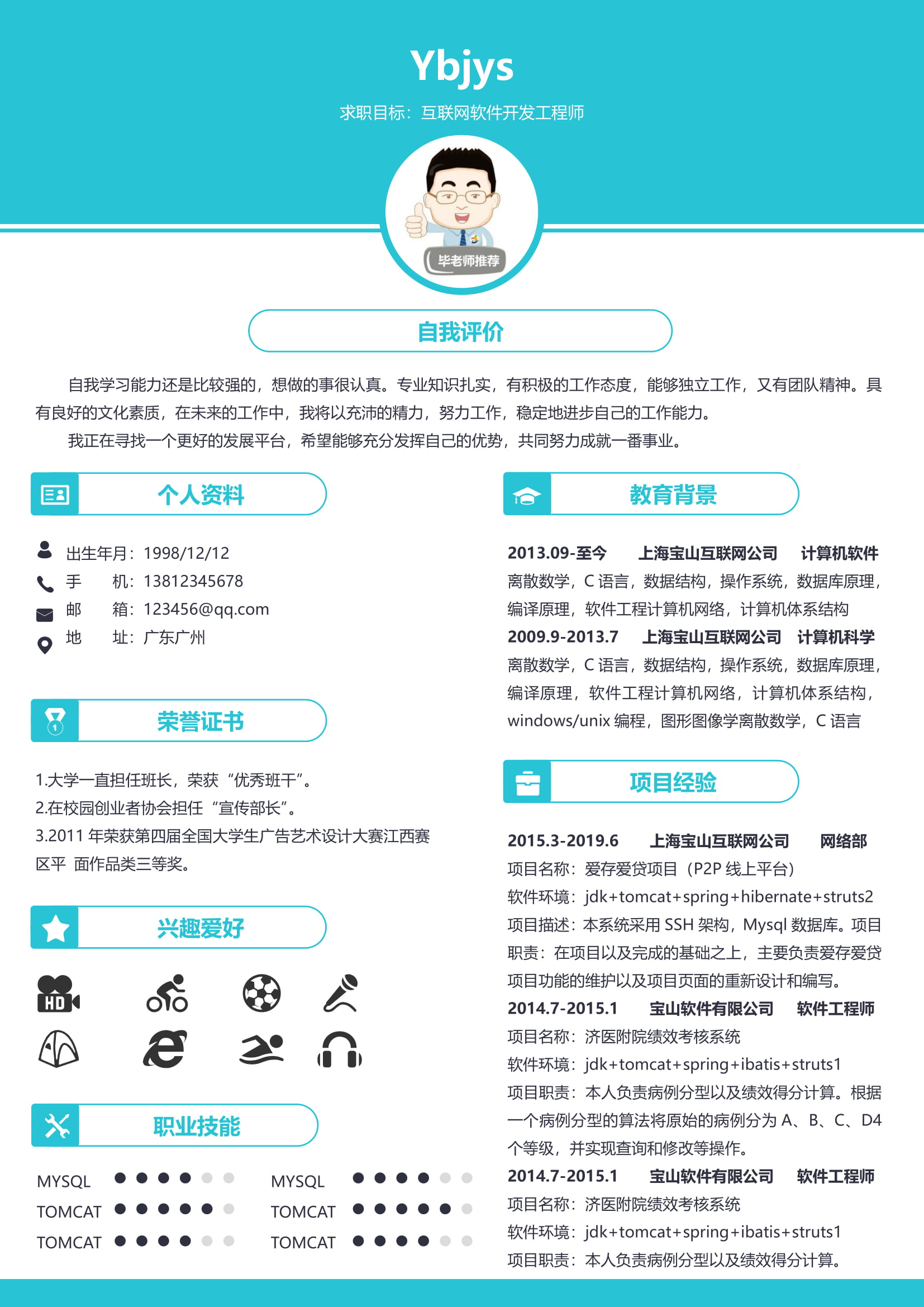 A202常用藍,黃,青簡歷模板
