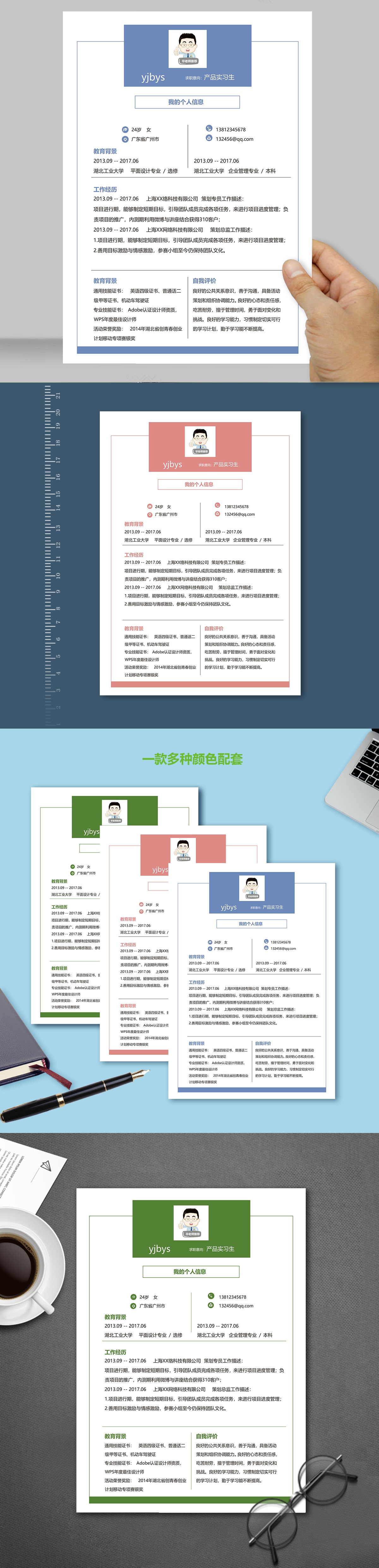 A185常用藍,紅,綠簡歷模板