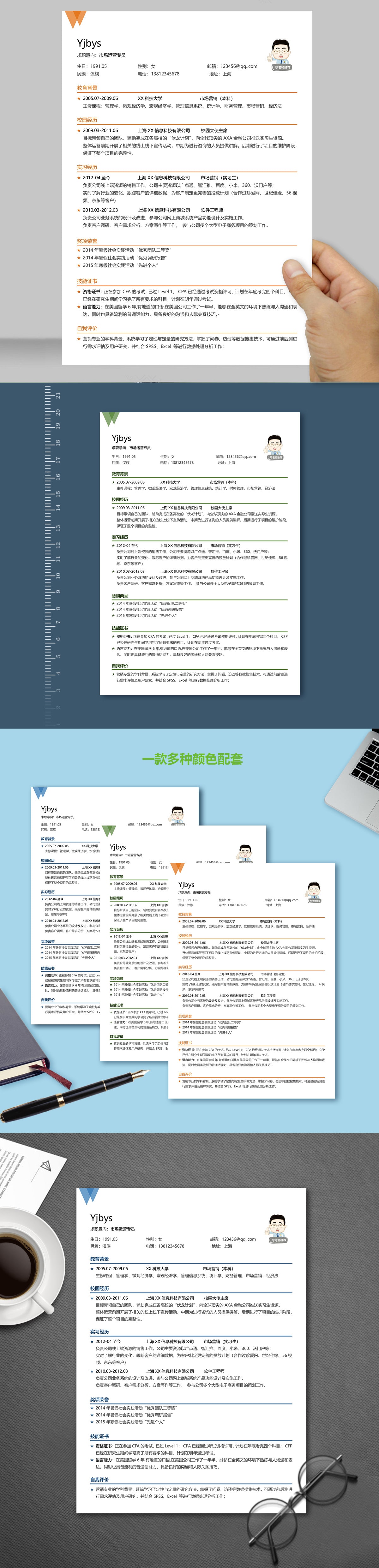 A182常用藍,粉,綠簡歷模板