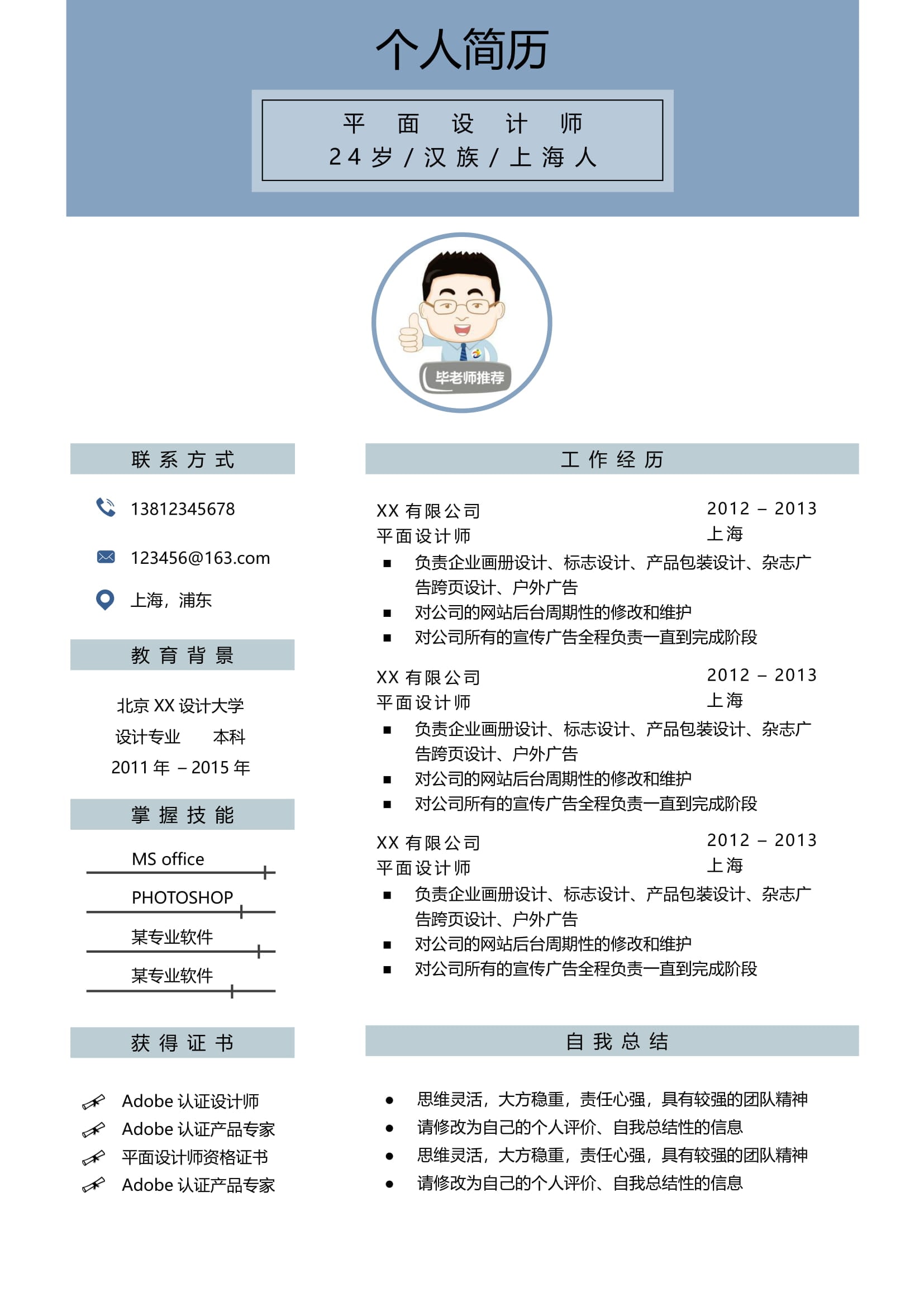 A500簡約4頁簡歷模板