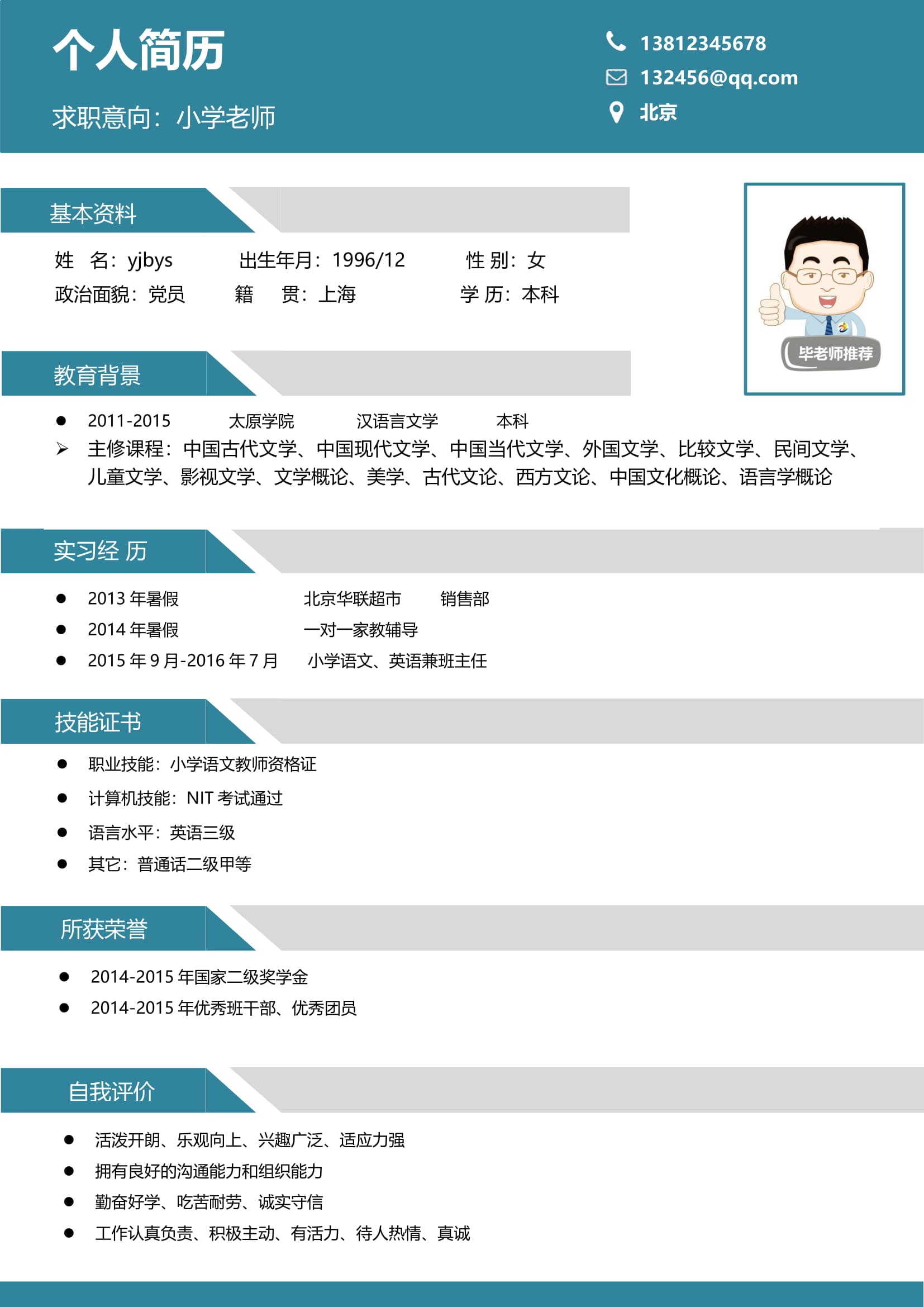 A202常用藍,黃,青簡歷模板