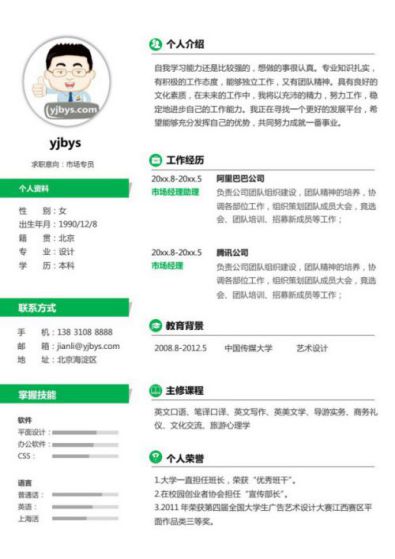 A131常用綠,黃,藍簡歷模板