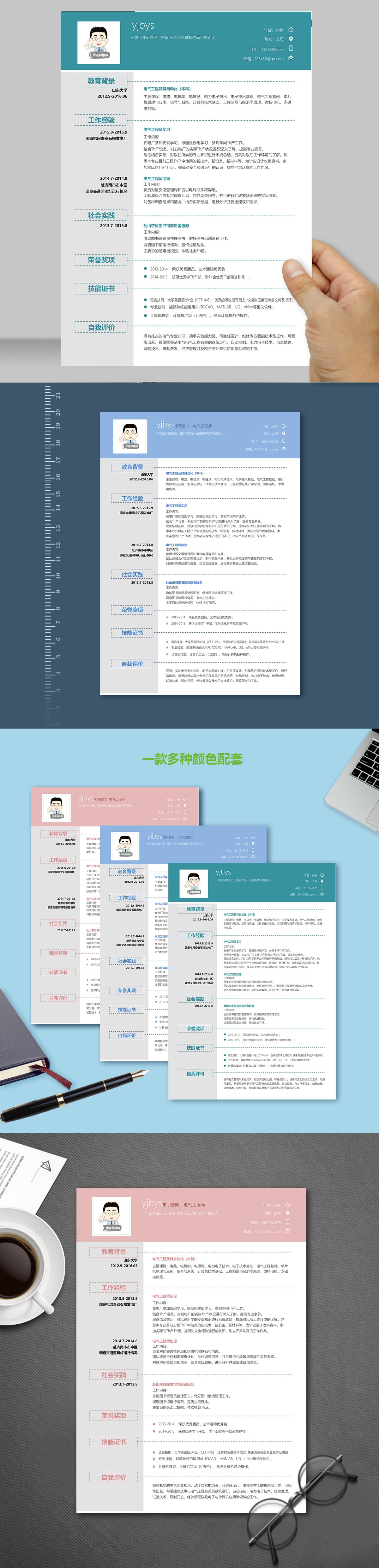 A182常用藍,粉,綠簡歷模板