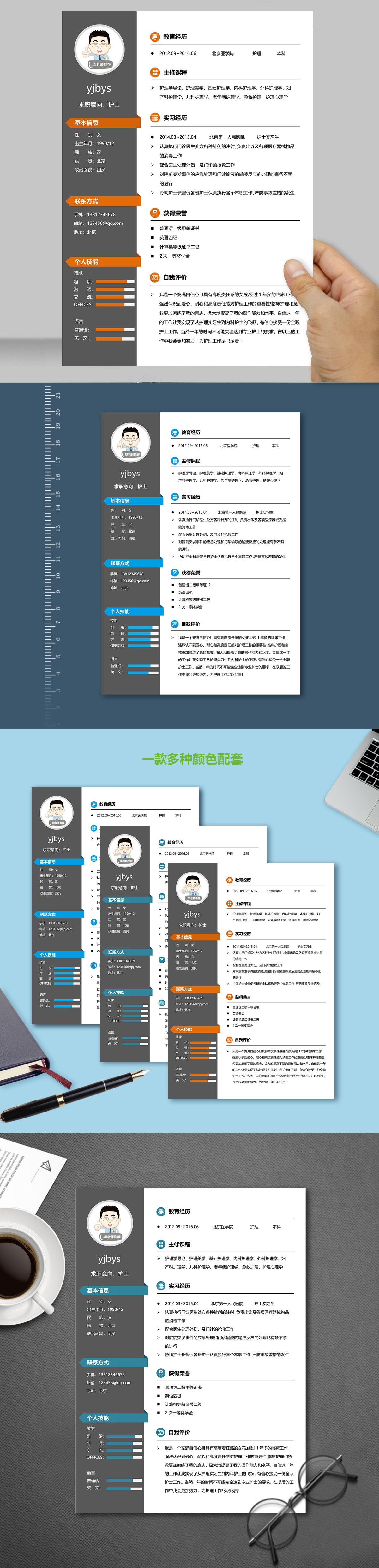 A463簡約藍,褐,綠簡歷模板
