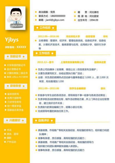 A091常用黃,褐,藍簡歷模板