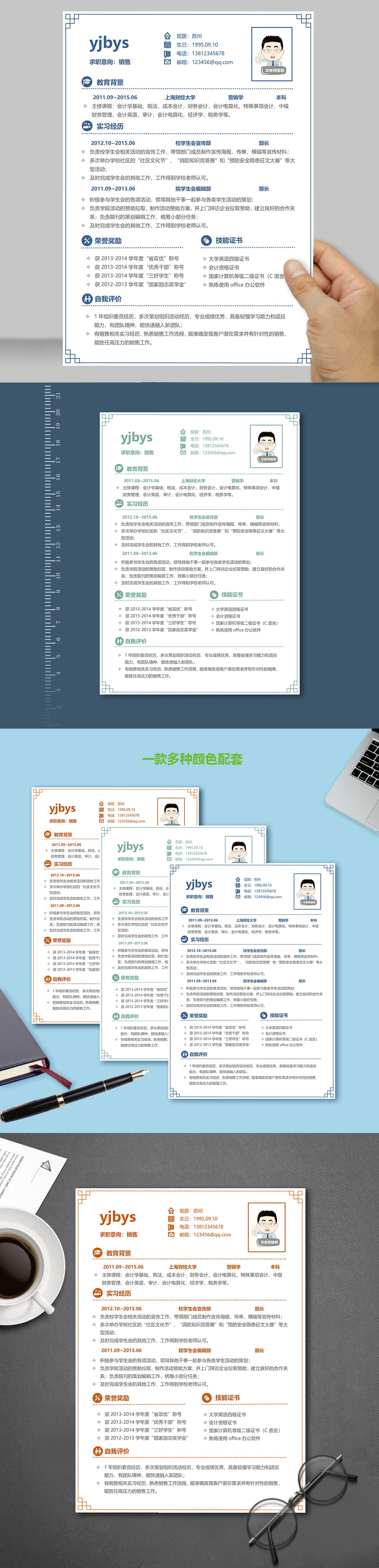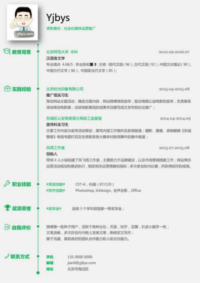 A135常用綠,褐,藍簡歷模板