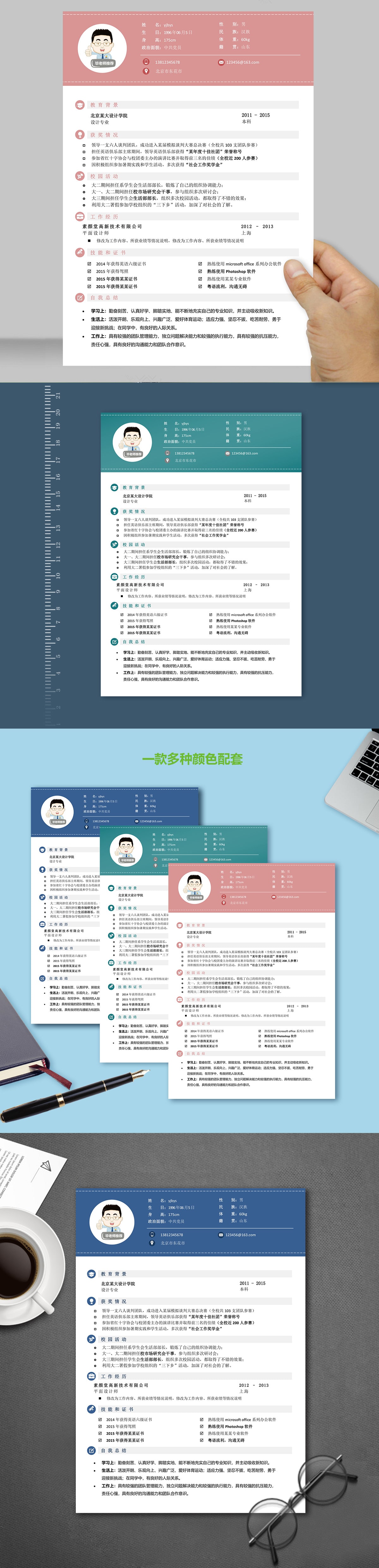 A154常用青,藍,綠簡歷模板