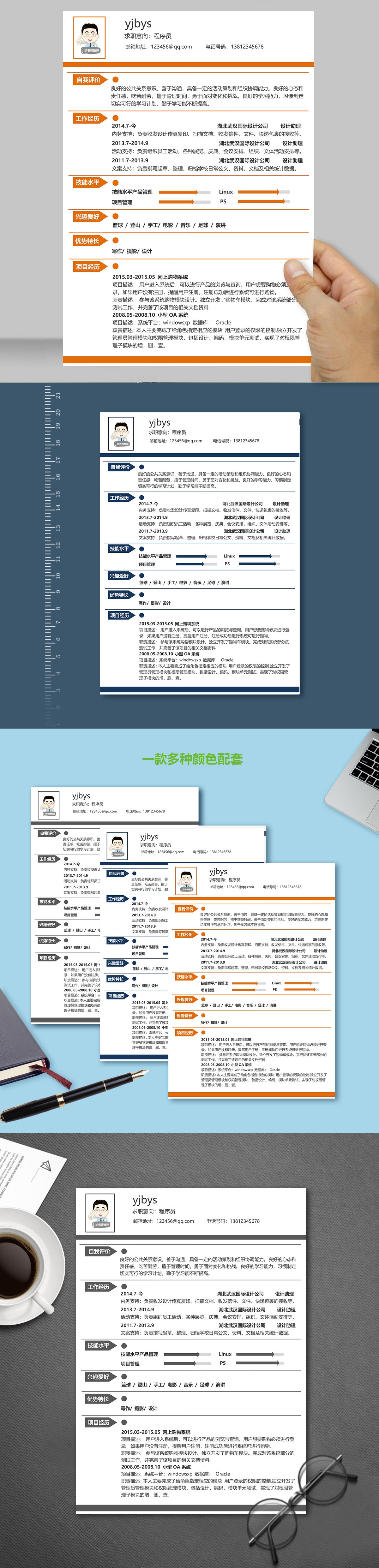 A053條紋狀藍色,橙色,綠色簡歷模板