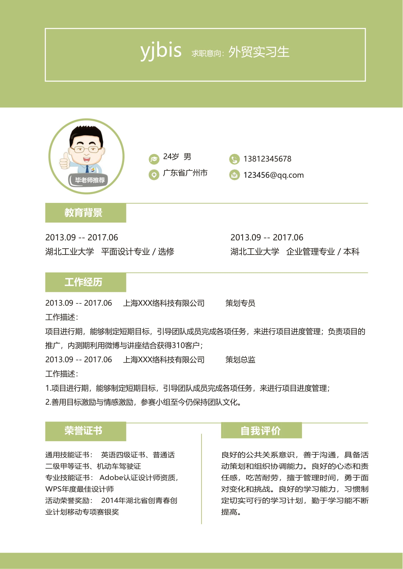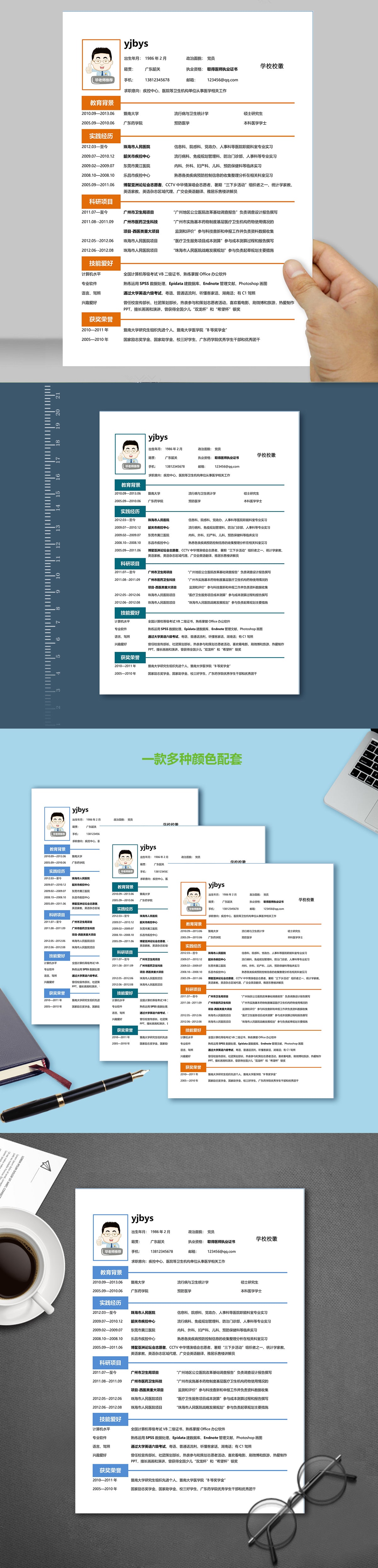 A589常用黃綠,淡藍,粉橙簡歷模板