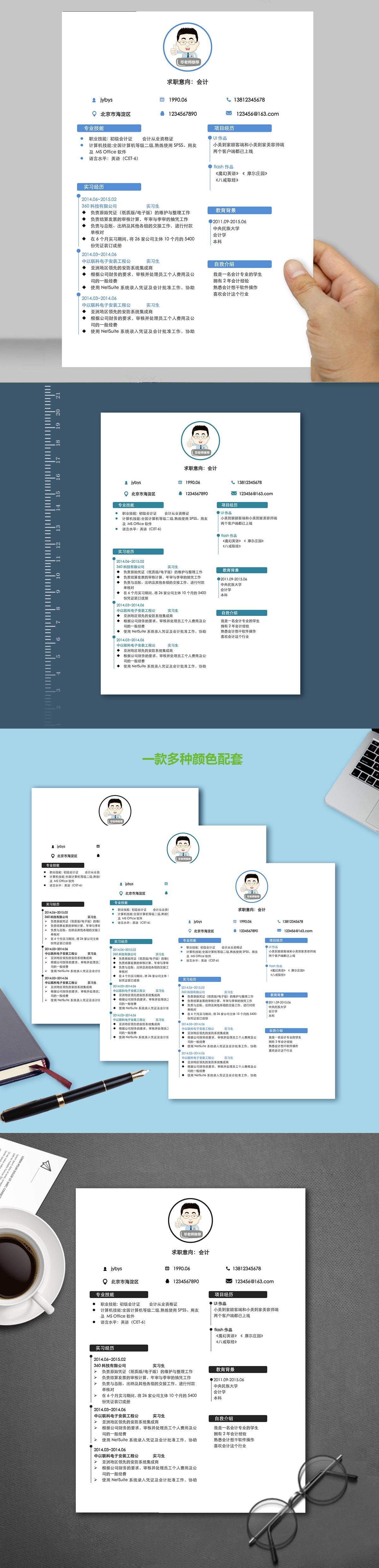 A121簡約灰,藍,綠簡歷模板