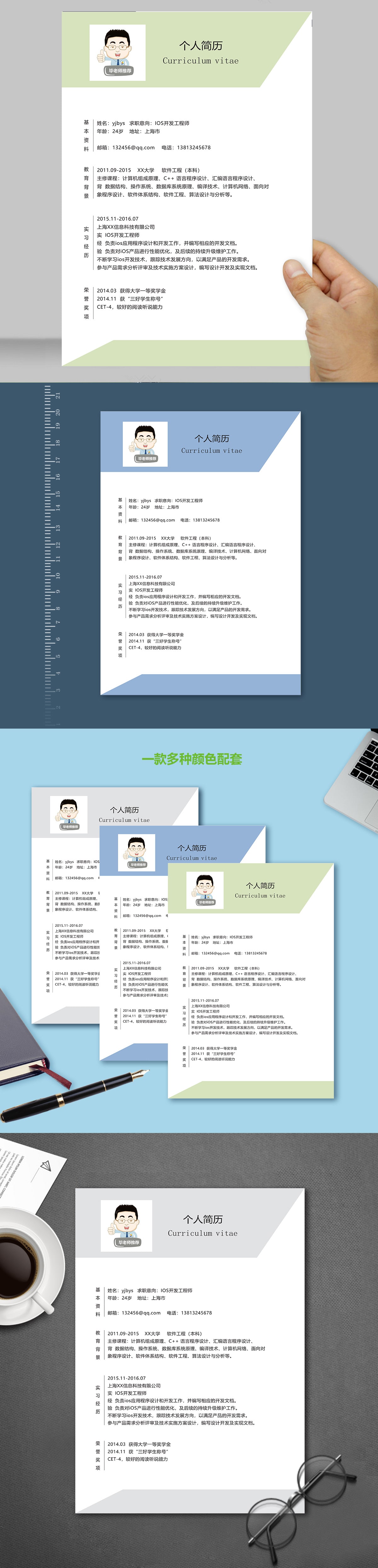 A012常用橙,藍,綠簡歷模板
