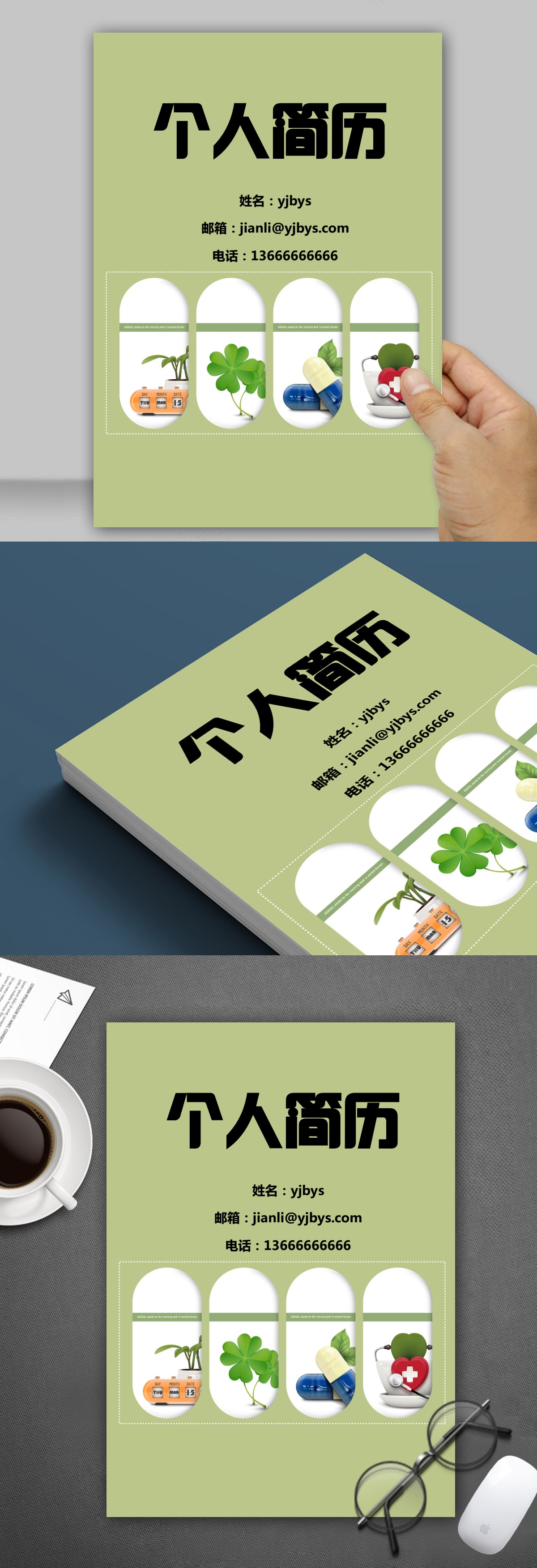 A453簡約紅,藍,綠簡歷模板