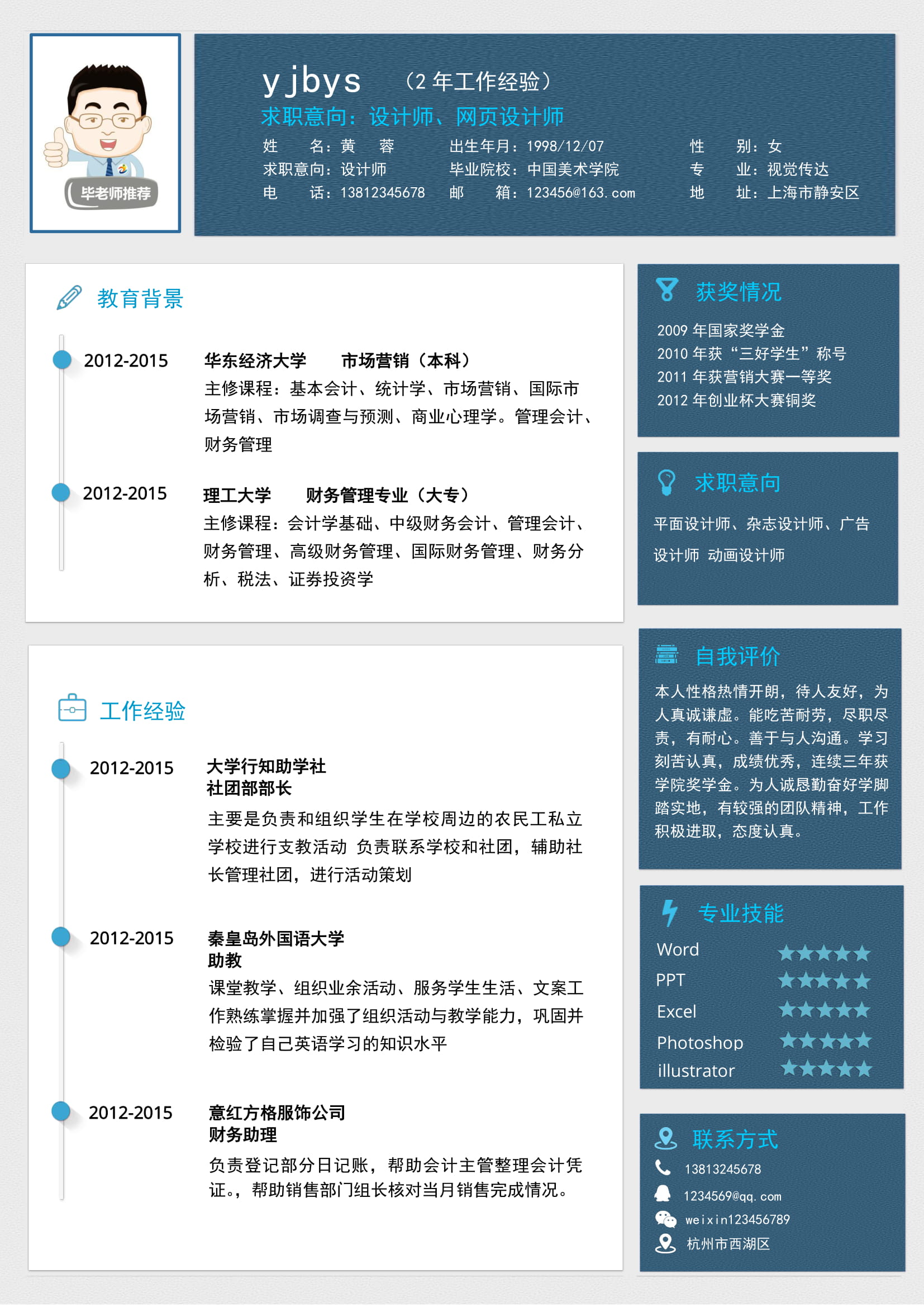 A571常用藏藍簡歷模板