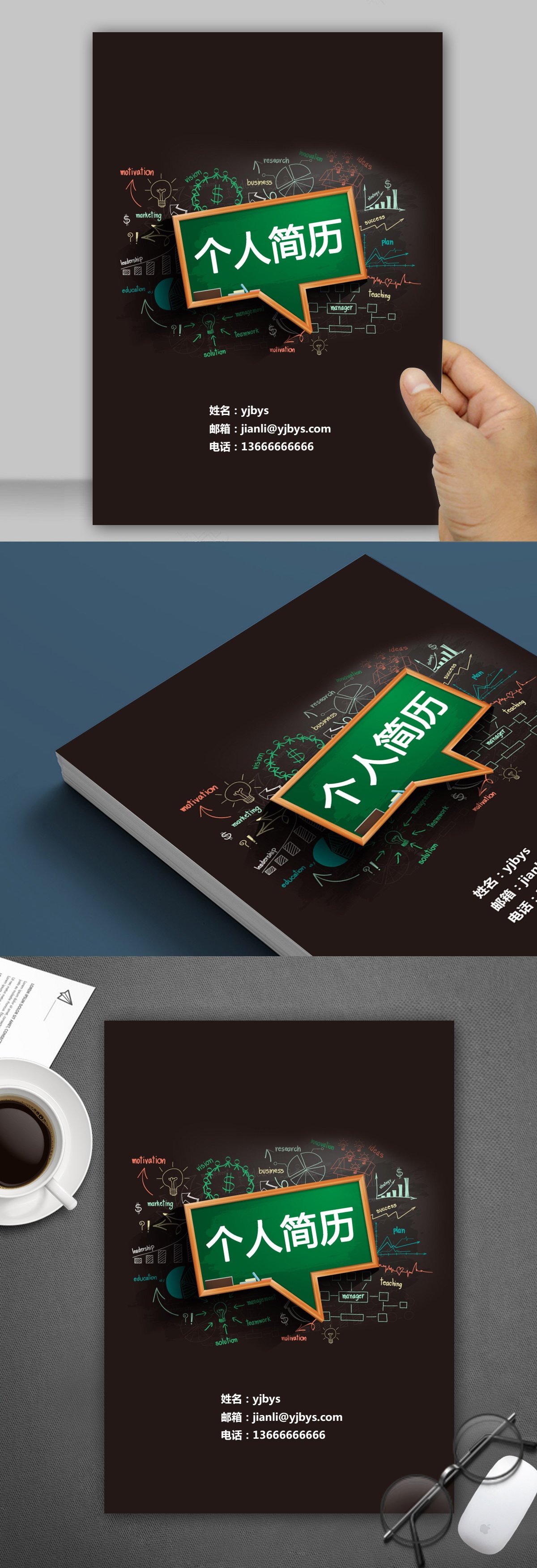 A158常用藍,黃,綠簡歷模板