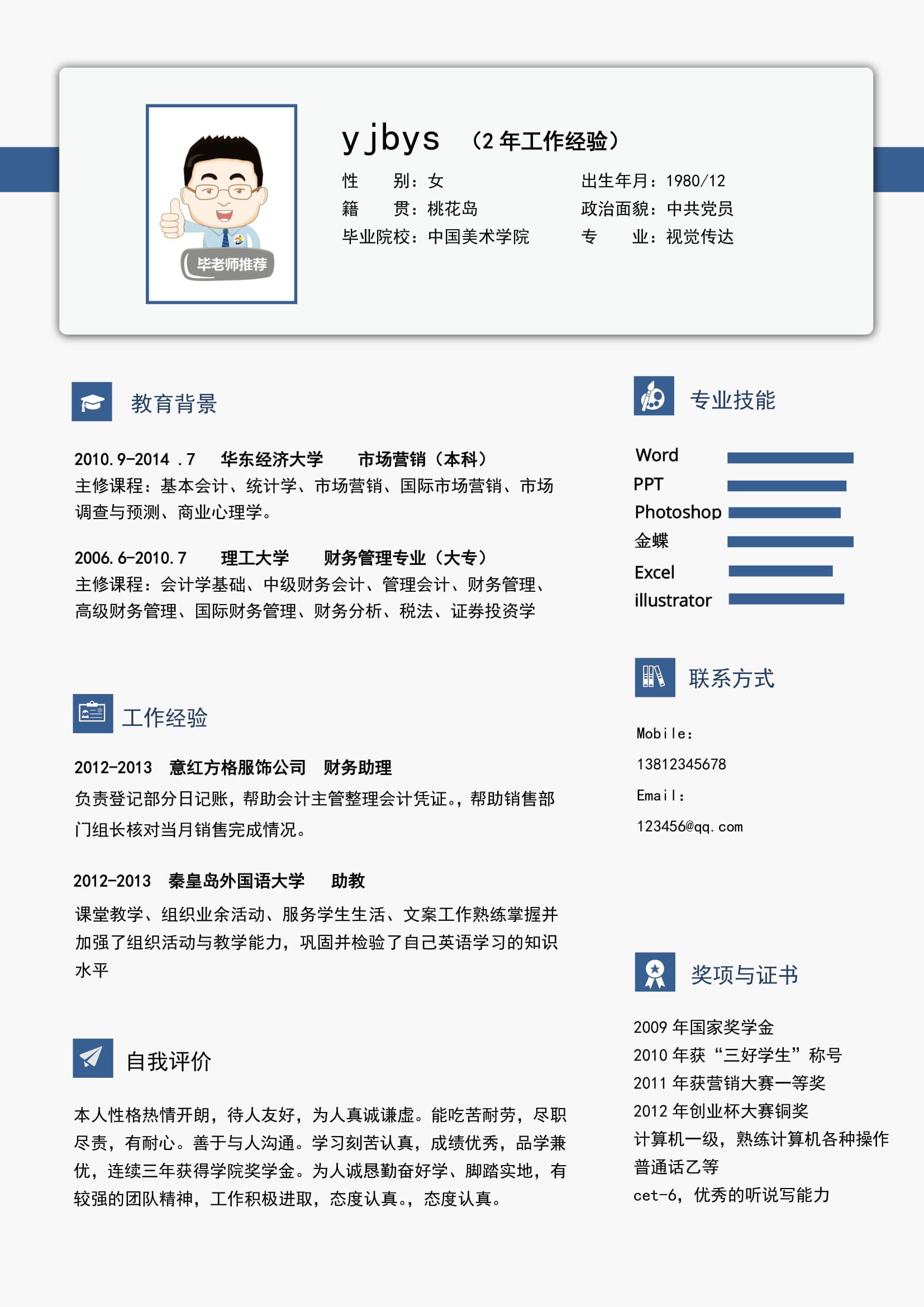 A586常用青藍簡歷模板