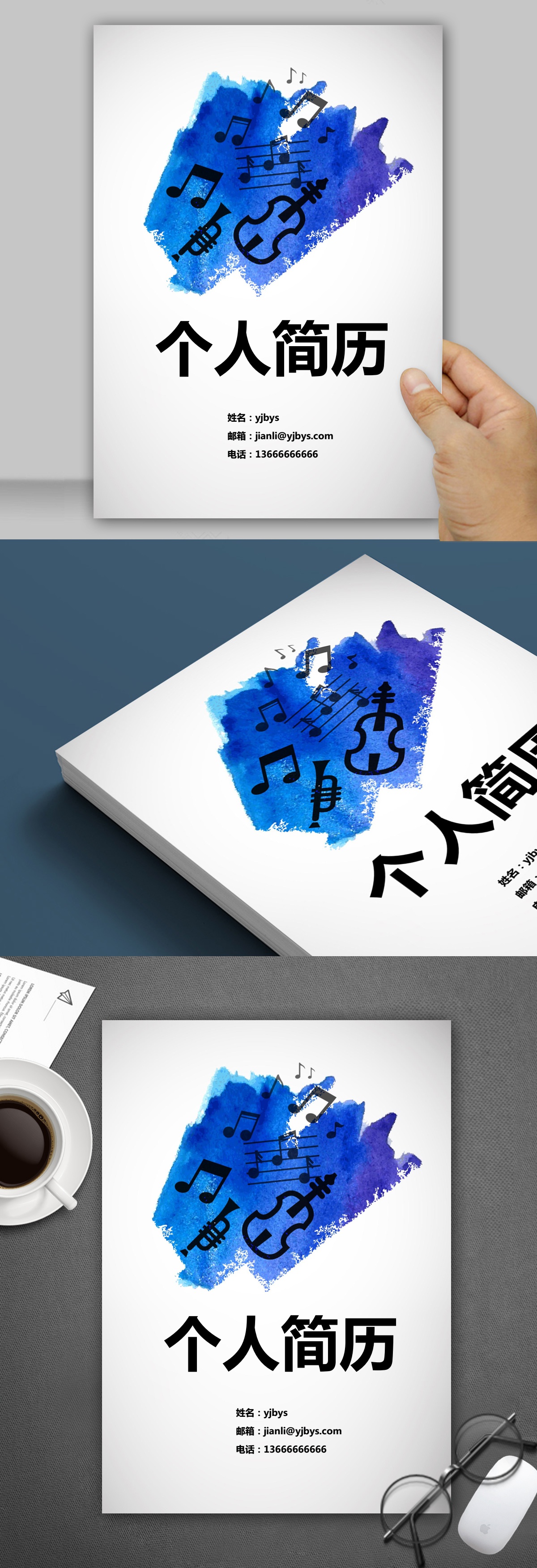 A477簡約藍,褐,綠簡歷模板